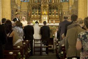 Doch am 27.07.2007 war alles anders...Ich erscheine gegen 14:30Uhr in der Kirche. Nur der Chor der Candle-light Singers ist schon vor Ort. Ansonsten ist die Kirche vollkommen leer. Ab 14:45Uhr beginnt sich die Kirche zu füllen. Um kurz nach drei beginnt die Orgel zu spielen. Nach den Blumenkindern folgen die vier Brautjungfern und dann ist es endlich soweit, Steffi wird von ihrem Vater zum Altar geführt...