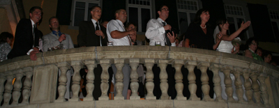 Damit war die Tanzfläche endlich eröffnet und die Feier kam so richtig in Schwung. Es dauerte nicht lange und Tanzfläche füllte sich. Allerdings kam es nochmal zu einer Unterbrechung, nämlich als der Brautstrauss geworfen wurde. Der mangelhafte Einsatz vieler junger Damen führte dazu, dass es tatsächlich einen zweiten Versuch gebraucht hat, um den Brautstrauss an die "Frau" zu bringen. Dann aber waren alle voll dabei. Stephanie, Glückwunsch an der Stelle. Tja Marco, damit ist Dein Schicksal besiegelt (aber das war es ja voher auch schon;)